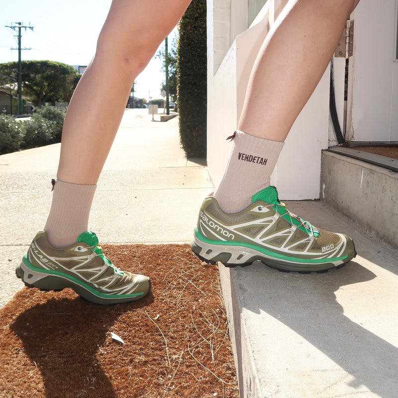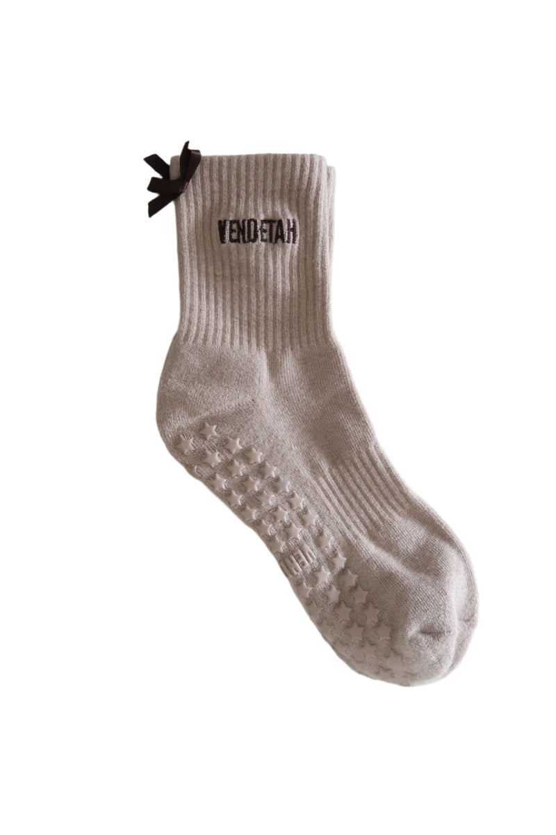 Introducing our "Clean Girl" Pilates Crew Socks in vanilla beige with a simple bow accent.
